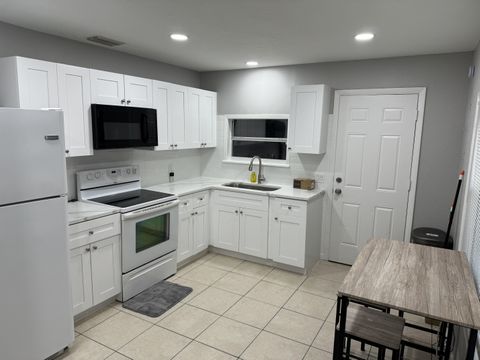 Enjoy living in a newly-renovated House. This modern home is decorated with modern touches while providing the basic necessities. All that’s missing is you! The kitchen is equipped with a fridge, sink, oven, stovetop. It’s the perfect spot for you to cook at home and save money. The surrounding location is close to public transit, making it the perfect place to call home. 10 minutes to Beautiful Clearwater Beaches. 15 minutes to Tampa-Clearwater-St. Petersburg Airports.