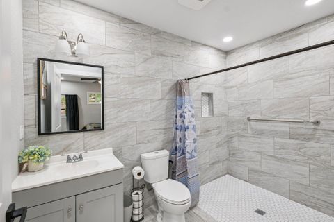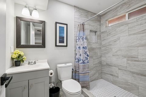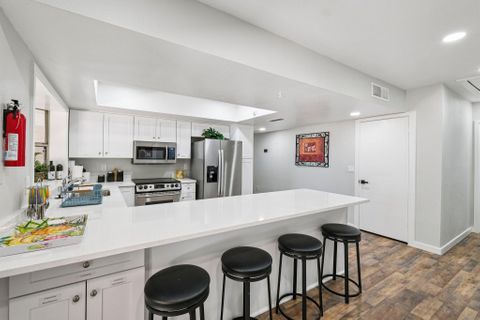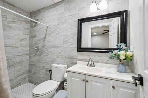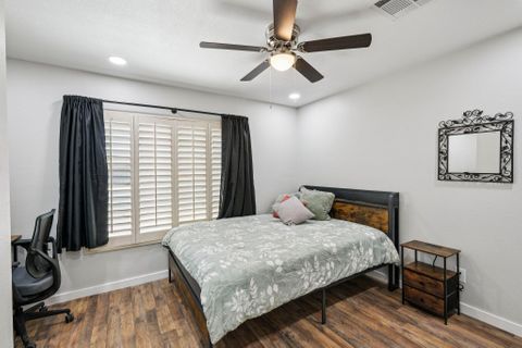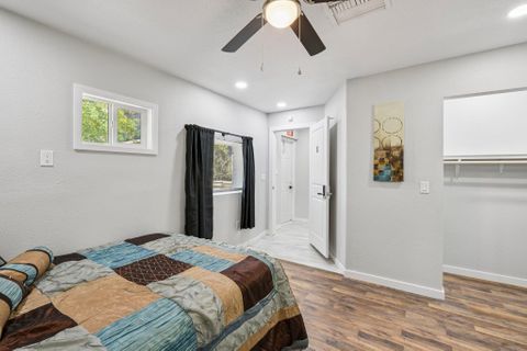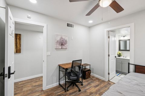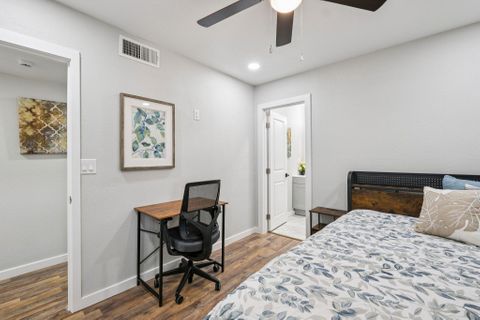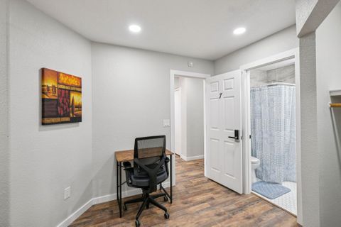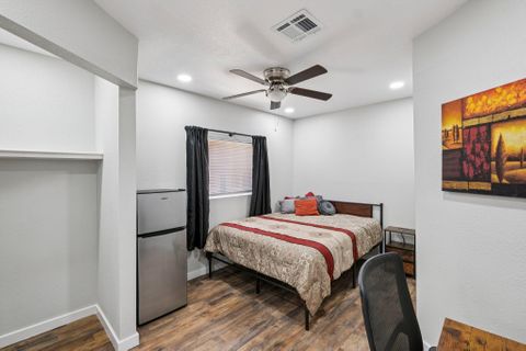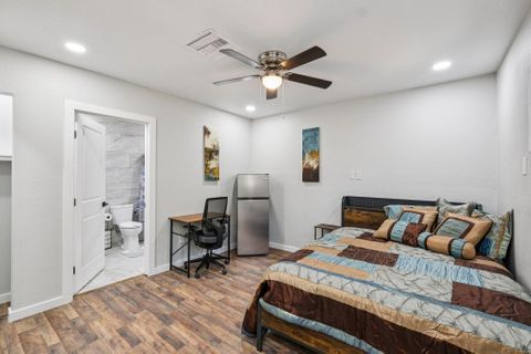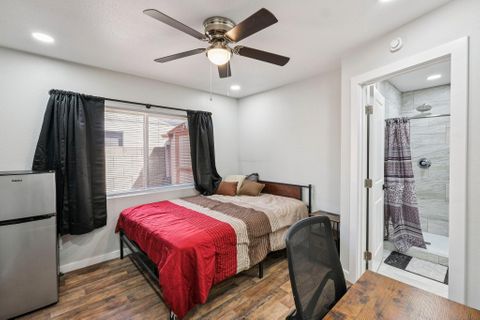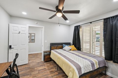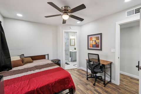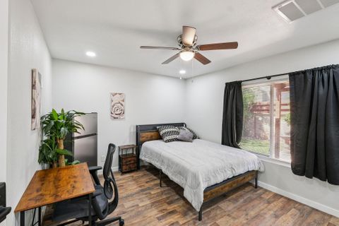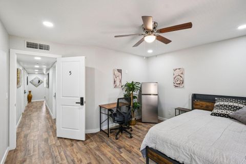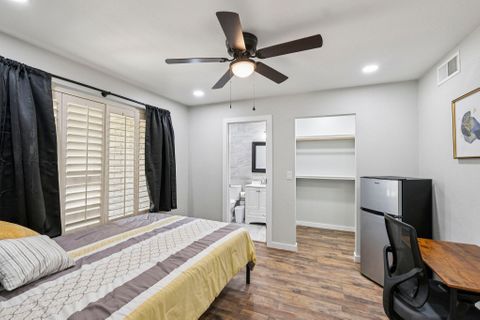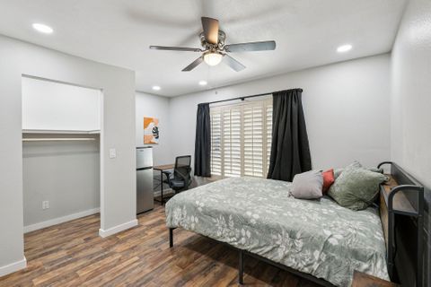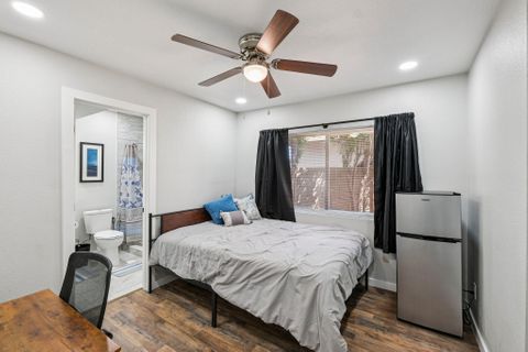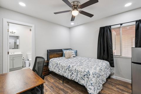Make this beautiful, newly remodeled, 8 bedroom (all suites with their own bathroom), house your new home today! All bedrooms have smart locks with personalized codes, a queen size bed, large fridge (7.5 cu. ft. with freezer), nightstand with charging station, work desk with upgraded office chair and most rooms have oversized closets for extra storage space and convenience. There are two sets of stacked washing/drying machines for laundry inside the house. The kitchen comes equipped with a fridge, sink, oven, stovetop, microwave, pots, pans and cooking utensils....making it the perfect spot to whip up a meal and enjoy. This home has plenty of parking spaces and is close almost everything you need for comfortable daily living. The neighborhood is quiet and conveniently close to grocery stores, fast food, shopping centers, public transportation and much more. Professionally managed, monthly cleaning of the common areas, bathrooms and landscaping upkeep. Bed linens are not provided so please bring your own.